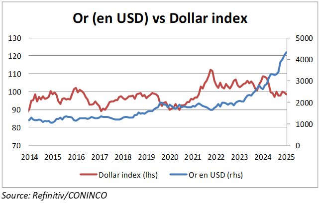 Un autre élément à relever est la remise en question progressive de l’indépendance de la Réserve fédérale américaine (FED). Le président américain a publiquement critiqué les décisions de la banque centrale et a commencé à remplacer les membres sortants du directoire de la FED par des personnalités plus enclines à suivre ses instructions. En effet, Donald Trump souhaite que la FED applique une politique monétaire beaucoup plus restrictive même si cela doit se faire au détriment du contrôle de l’inflation et donc de la valeur du dollar.